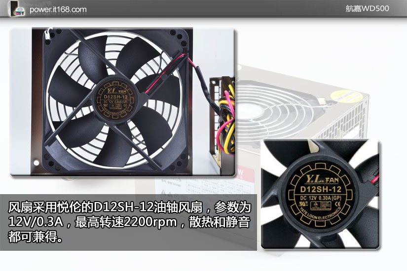 WD500电源采用12cm下吹式风扇进行散热,大尺寸风扇能