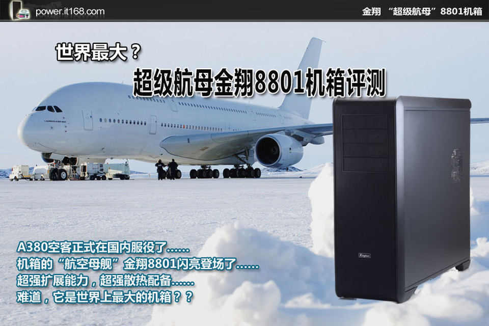 文章导读:国内最大的空客A380,终于上线运营了,巨无霸的机身体积和超级的载客能力,是航空迷和旅客们竞相追逐的焦点。而在机箱业界里面,最近也诞生了一个巨无霸,它就是来自金翔的JX-8801机箱,巨型到有点强悍的程度的它,可能是全世界最大的一个机箱,其拥有超强的扩展能力,超强散热配备,超大的配件装载空间,更严格地说来,它不但是一个机箱,而且还是巨大的“储物箱”,不信你们都来看看……