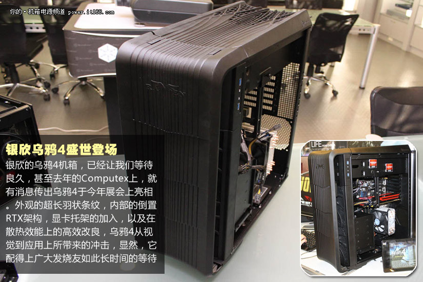 银欣的乌鸦4机箱,已经让我们等待良久,甚至去年的Computex上,就有消息传出乌鸦4于今年展会上亮相。外观的超长羽状条纹,内部的倒置RTX架构,显卡托架的加入,以及在散热效能上的高效改良,乌鸦4从视觉到应用上所带来的冲击,显然,它配得上广大发烧友如此长时间的等待