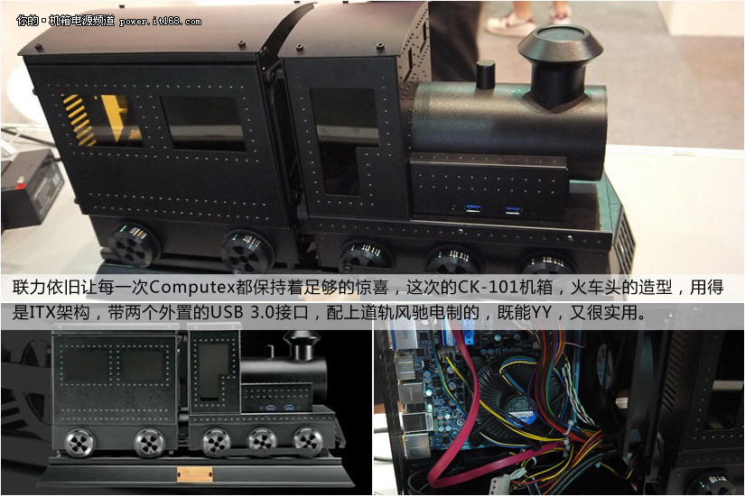 联力依旧让每一次Computex都保持着足够的惊喜,这次的CK-101机箱,火车头的造型,用得是ITX架构,带两个外置的USB 3.0接口,配上道轨风驰电制的,既能YY,又很实用。