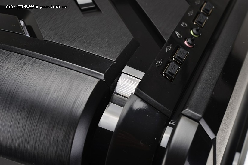 顶部是控制面板,前端接口、开机键、重启键、风扇调速键和指示灯错落有致。