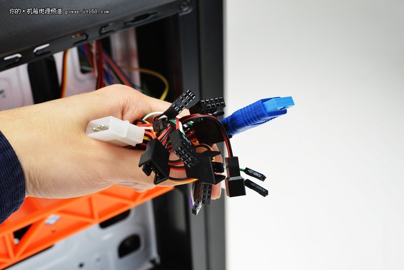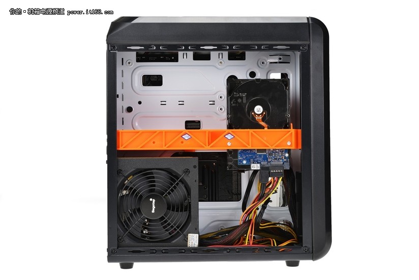 万能仓结构,支持1个5.25英寸光驱/2块机械硬盘/3块固态硬盘,扩展能力非常不错。