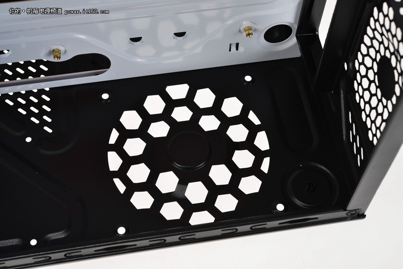 底部12CM散热风扇孔。